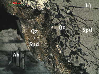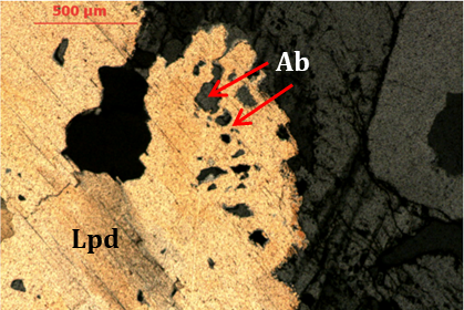 Petrographic studies in the case of Gonçalo revealed that lepidolite crystals frequently present microinclusions of quartz and albite as shown in Figure 13.