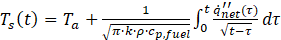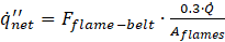 As described in chapter 2.3.2, the heat release rate of a belt segment will vary as a function of the incident heat flux. Depending on the calculated incident heat flux at the belt segment prior to ignition, the peak heat release rate per unit area was set according to the values found in chapter 2.3.2.