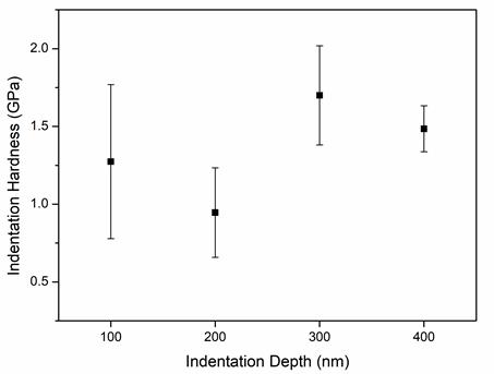 Furthermore, the hardness of nano-twinned Ag film with the thickness of 9 µm was measured by nanoindenter at different indentation depths. Due to the substrate effect and roughness effect, the indentation hardness values are more precise when the depths are greater than 200 nm. Figure 9 shows a maximal hardness value of 1.7 ± 0.3 GPa taken at the indentation depth of 300 nm. It is much larger than the 0.3 GPa of Ag film with normal grains. This result demonstrated that the Ag film possessed an excellent mechanical property, caused by high-density nano-twinned grain structure comprising fine twin thicknesses.