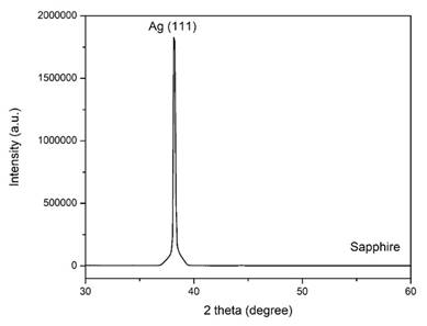 Both magnetron sputtering and evaporation deposition are applied to deposit the highly <111>-oriented Ag films with thickness of 4 µm onto (001)-sapphire substrates. Half portion of the specimens are precoated with Ti as the adhesive layers for a thickness of 100 nm. For the magnetron sputtering process, the chamber was evacuated to vacuum of 5×10-6 torr and the working pressure of 5×10-3 torr before deposition starts. For film thickness of 4 µm, the deposition rate of Ag films is 0.85 nm/s with a sputtering power of 150W. Whereby for the electron beam evaporation process, an ion beam-assisted system is applied to induce ion bombardment to the deposited films. The base pressure is set below 5×10-6 torr and the working pressure is at 1.5×10-4 torr with 4.5 sccm of argon (Ar) gas flow as ion source. The ion beam voltage and current are 60 V and 0.4 A, respectively.
